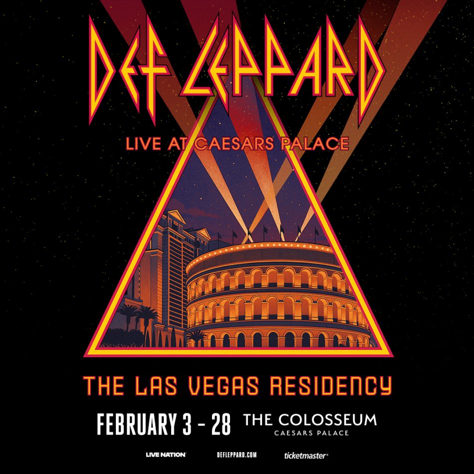 Global icons DEF LEPPARD, who have sold more than 110 million albums worldwide and have countless accolades including their induction into the Rock & Roll Hall of Fame, announced their triumphant return to Las Vegas today with their third residency that promises a brand new electrifying production to showcase their timeless catalog of hits along with some new surprises that fans and newcomers alike will love. Def Leppard: Live at Caesars Palace The Las Vegas Residency will set the strip alight from February 3 through 28, 2026 at The Colosseum at Caesars Palace. These new shows follow the band’s sold-out residency successes in 2019 and 2013.