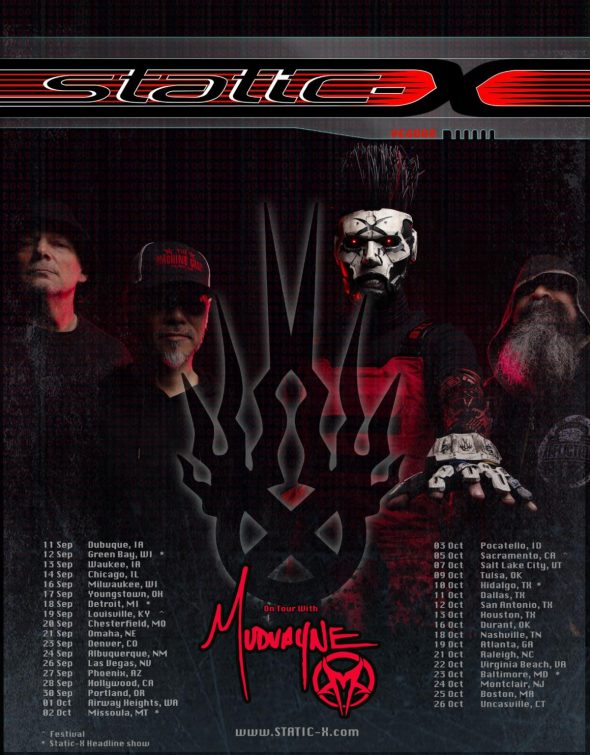 Static-X’s original Wisconsin Death Trip lineup of Tony Campos, Koichi Fukuda, & Ken Jay along with current vocalist/guitarist Xer0 will continue to bring their ultra entertaining Evil Disco extravaganza on the road throughout 2025. Along with festival appearances at Louder Than Life and Aftershock, the band will be supporting Mudvayne on their tour this September and October. Static-X will also be playing 6 headline shows throughout that run. Those dates will see them land in Green Bay, WI (Sep 12), Detroit, MI (Sep 18), Missoula, MT (Oct 02), Hidalgo, TX (Oct 10), and Baltimore, MD (Oct 23). Dope will be joining the band on those headline shows. Tickets for all shows including VIP packages can be found at: www.static-x.com.
